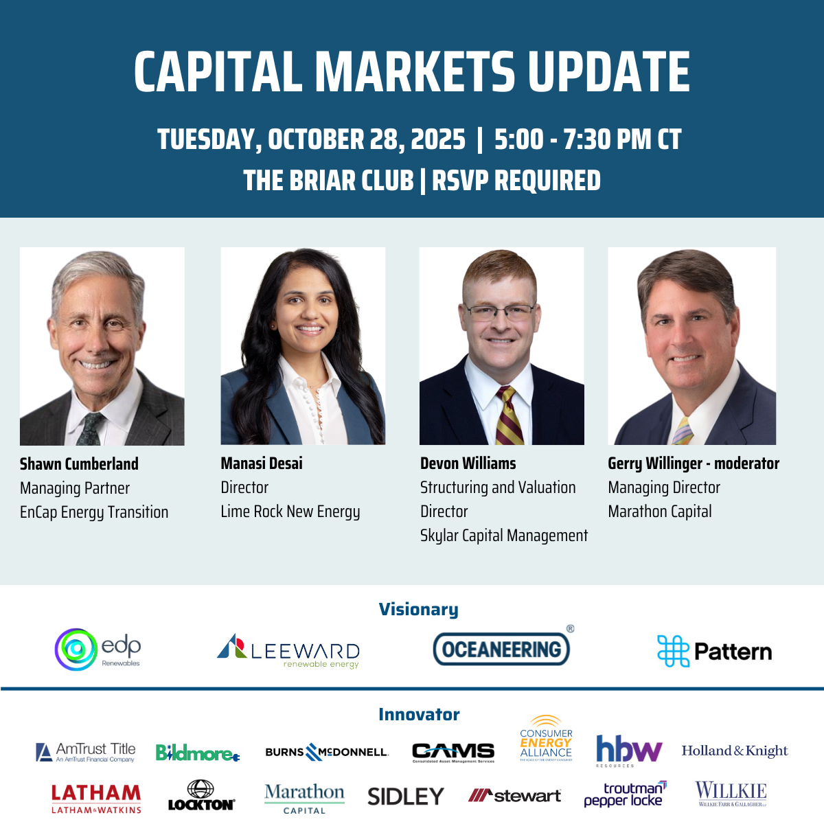 REAL Houston hosted our panel event, “Capital Markets Update”, on October 28, 2025 at the Briar Club. Our expert panel shared their perspectives on the state of capital investments in the current environment, and what’s to come.