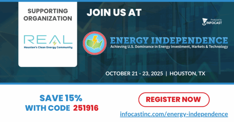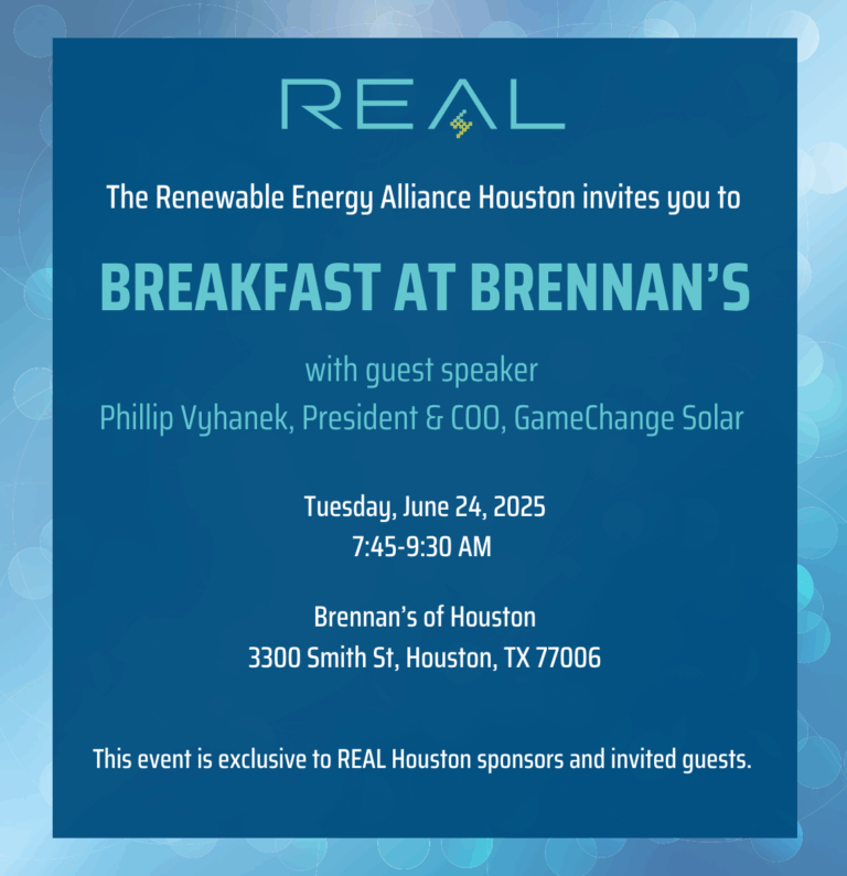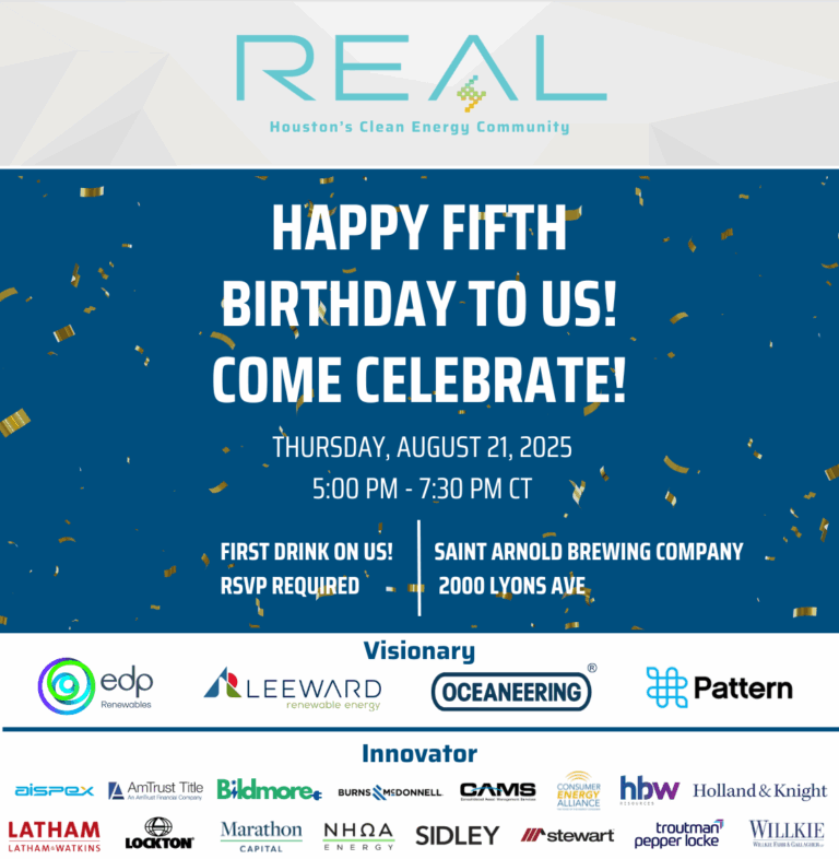 REAL Houston hosts several meetings and events throughout the year to connect thought leaders, grow the network of renewable energy industry professionals, and promote innovation. REAL Houston also shares conferences or events on a range of topics relevant and of interest to our membership.